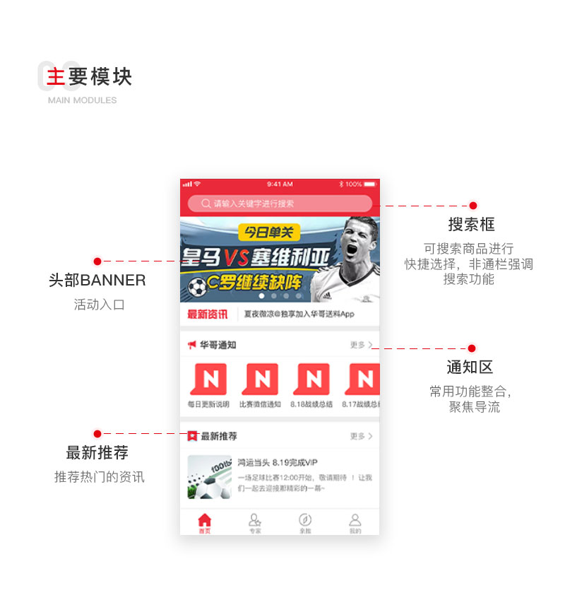 華哥送料球賽信息資訊類(lèi)APP是針對(duì)愛(ài)看球賽的用戶(hù)定制開(kāi)發(fā)的一款球賽資訊類(lèi)APP,用戶(hù)通過(guò)瀏覽球賽相關(guān)資訊、互動(dòng)信息以及專(zhuān)家對(duì)球賽結(jié)果的預(yù)測(cè)。